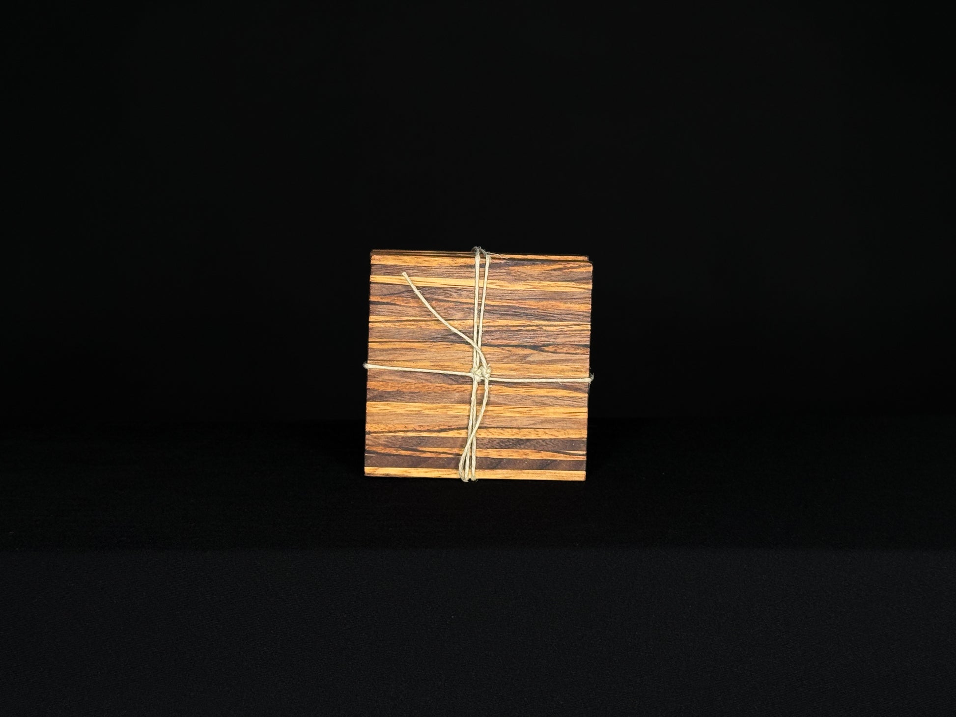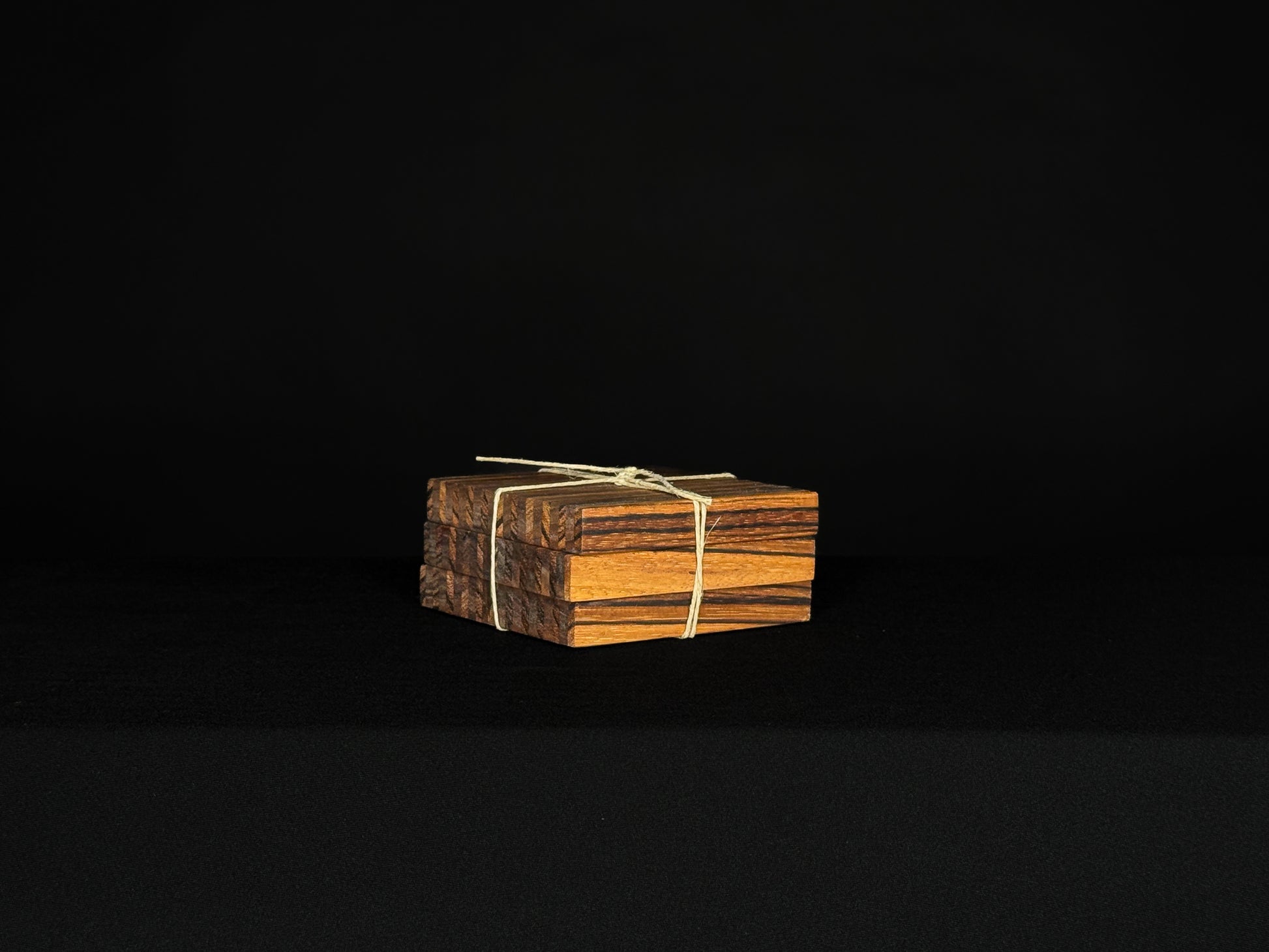 Curly Walnut and Zebrawood Coaster Set – Handmade Thick Wood Coasters