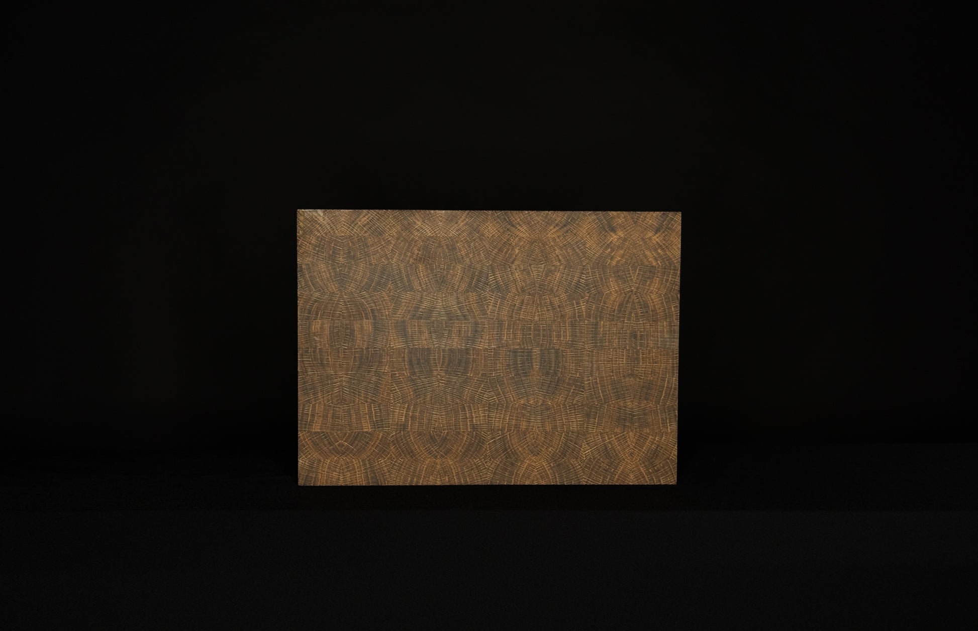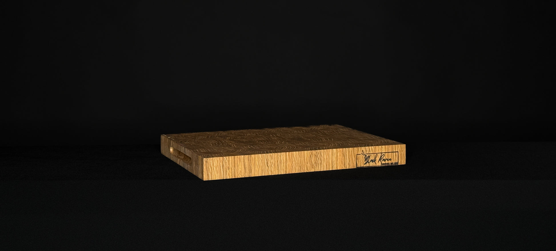 This end grain cutting board is handcrafted from White Oak, featuring a unique bookmatched grain pattern. This board is flippable and includes finger grooves on the sides for easy handling. Each board can be custom-built to your specifications, with options for alternative wood species and dimensions, allowing you to create a unique board that perfectly fits your taste.