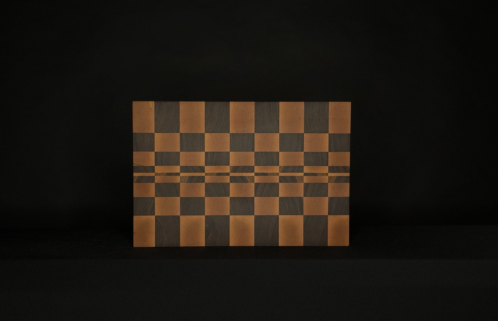 This end grain cutting board is handcrafted from Walnut and Maple, featuring a checker pattern. This board is flippable and includes finger grooves on the sides for easy handling. Each board can be custom-built to your specifications, with options for alternative wood species and dimensions, allowing you to create a unique board that perfectly fits your taste.