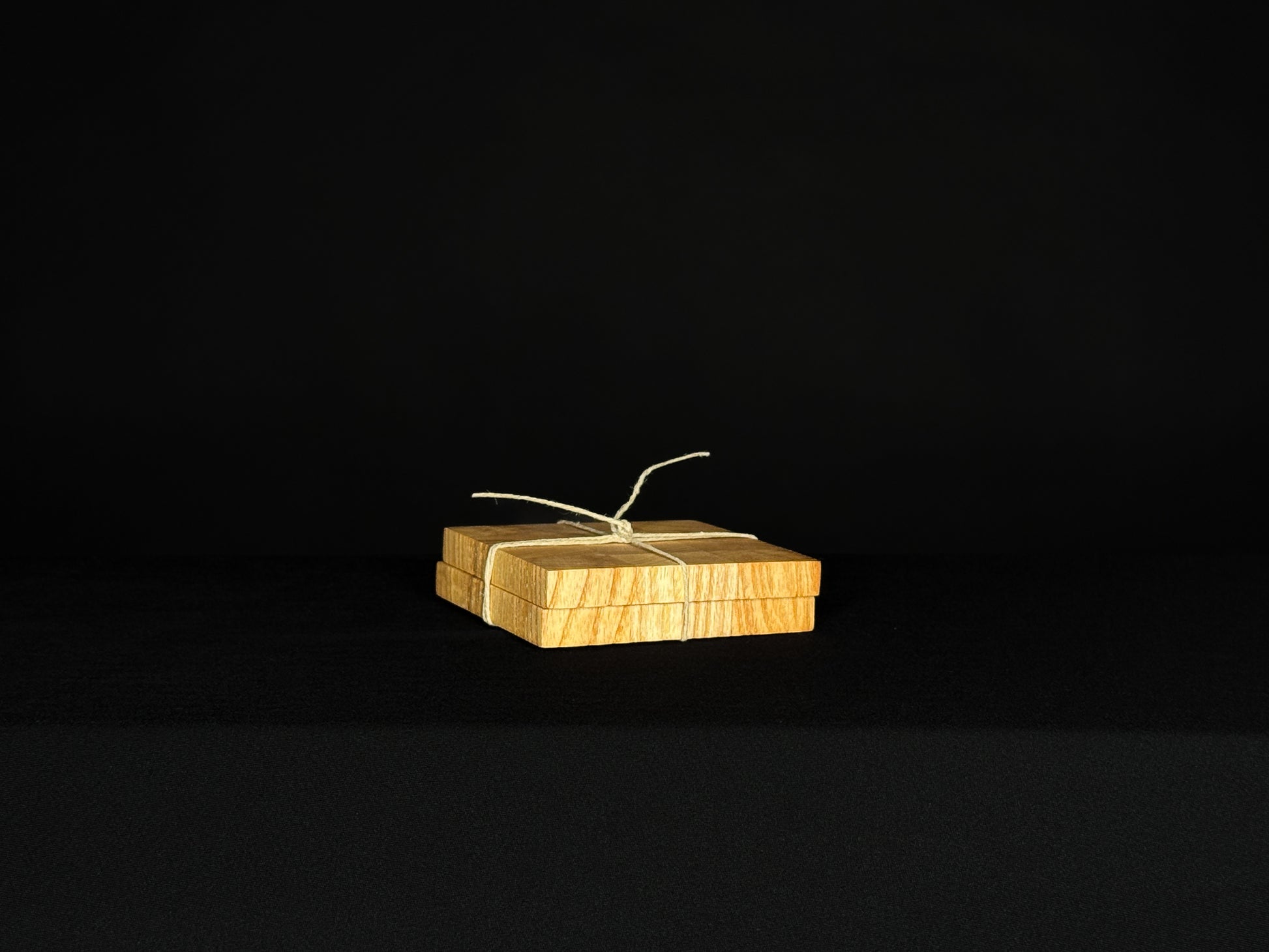 This coaster set is handcrafted from Ash. This set of two coasters elevates any office or living space while protecting your surfaces from your favorite beverages. Each set can be custom-built to your specifications, with options for alternative wood species and dimensions, allowing you to create a unique coaster set that perfectly fits your taste.