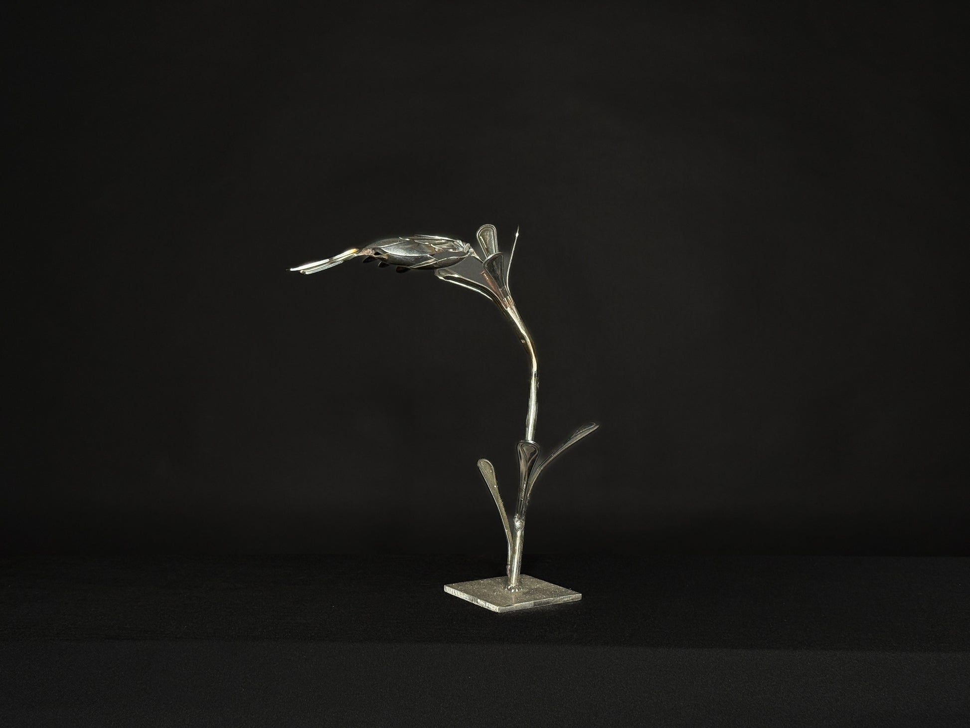Handcrafted from recycled materials, this welded metal sculpture is a one-of-a-kind art piece. The Bird design brings a touch of elegance and intrigue to any home or office. Place this sculpture on a shelf, table, or mantel to add artistic flair and a unique conversation piece to your space.