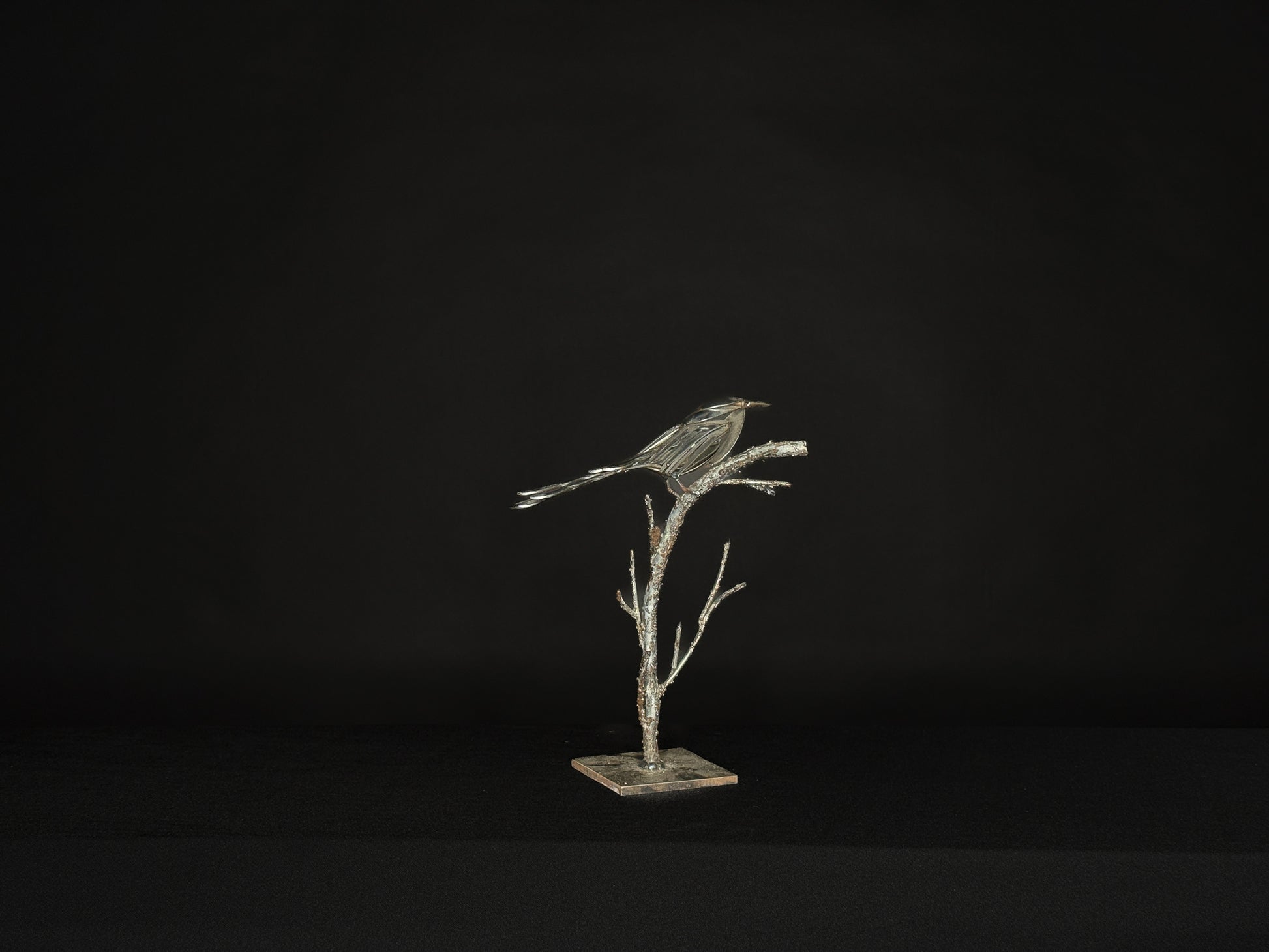 Handcrafted from recycled materials, this welded metal sculpture is a one-of-a-kind art piece. The Bird design brings a touch of elegance and intrigue to any home or office. Place this sculpture on a shelf, table, or mantel to add artistic flair and a unique conversation piece to your space.