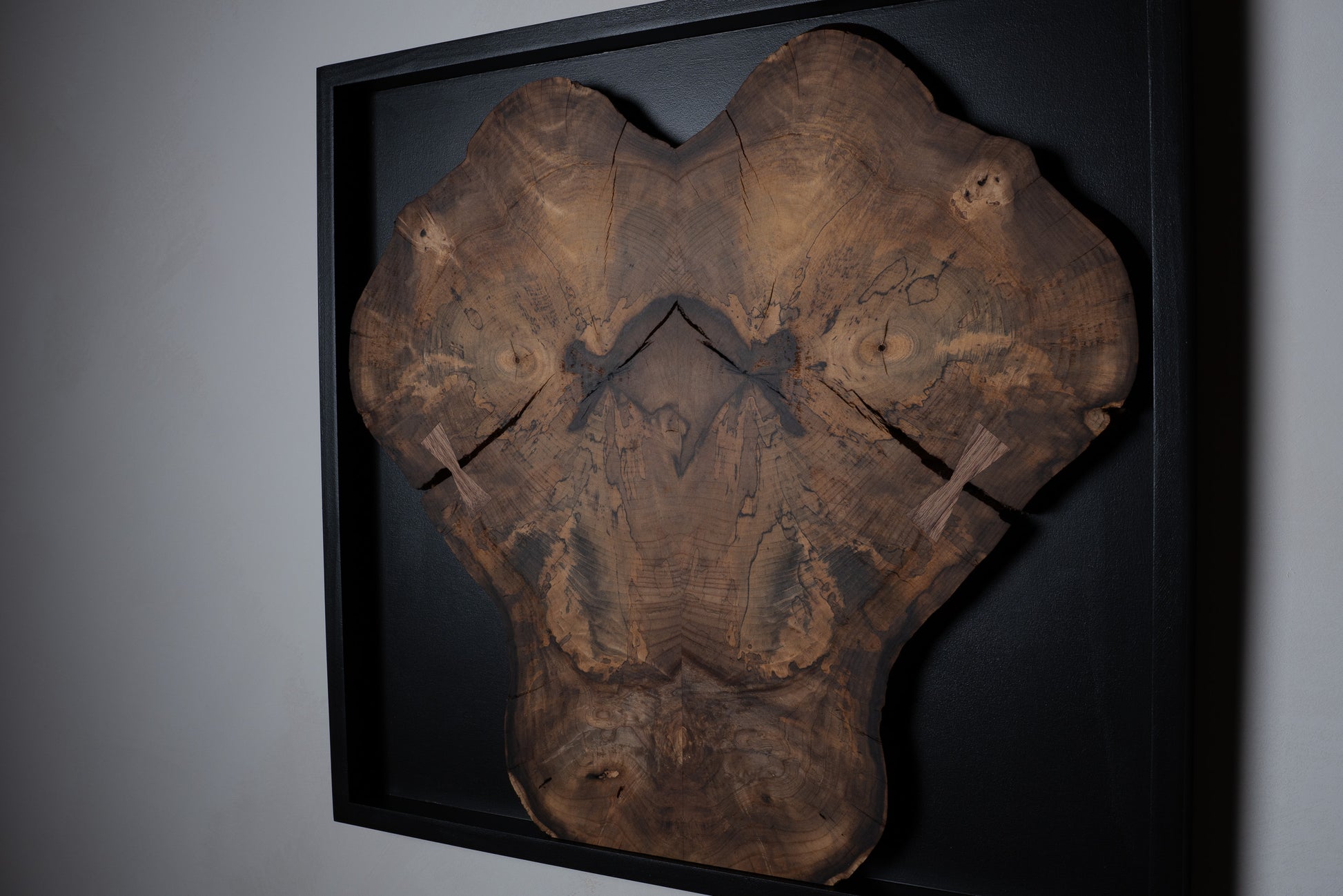 This wall art piece is handcrafted from a bookmatched Magnolia slab, showcasing the wood’s natural beauty and character. Using the bookmatching technique, the grain is mirrored to create a striking, symmetrical pattern that highlights years of natural growth. Every bookmatched wall art piece we create is a singular work of nature—no two are alike, and each piece can never be duplicated, making every creation utterly unique. It brings a bold artistic statement to any living room, office, or lounge space.
