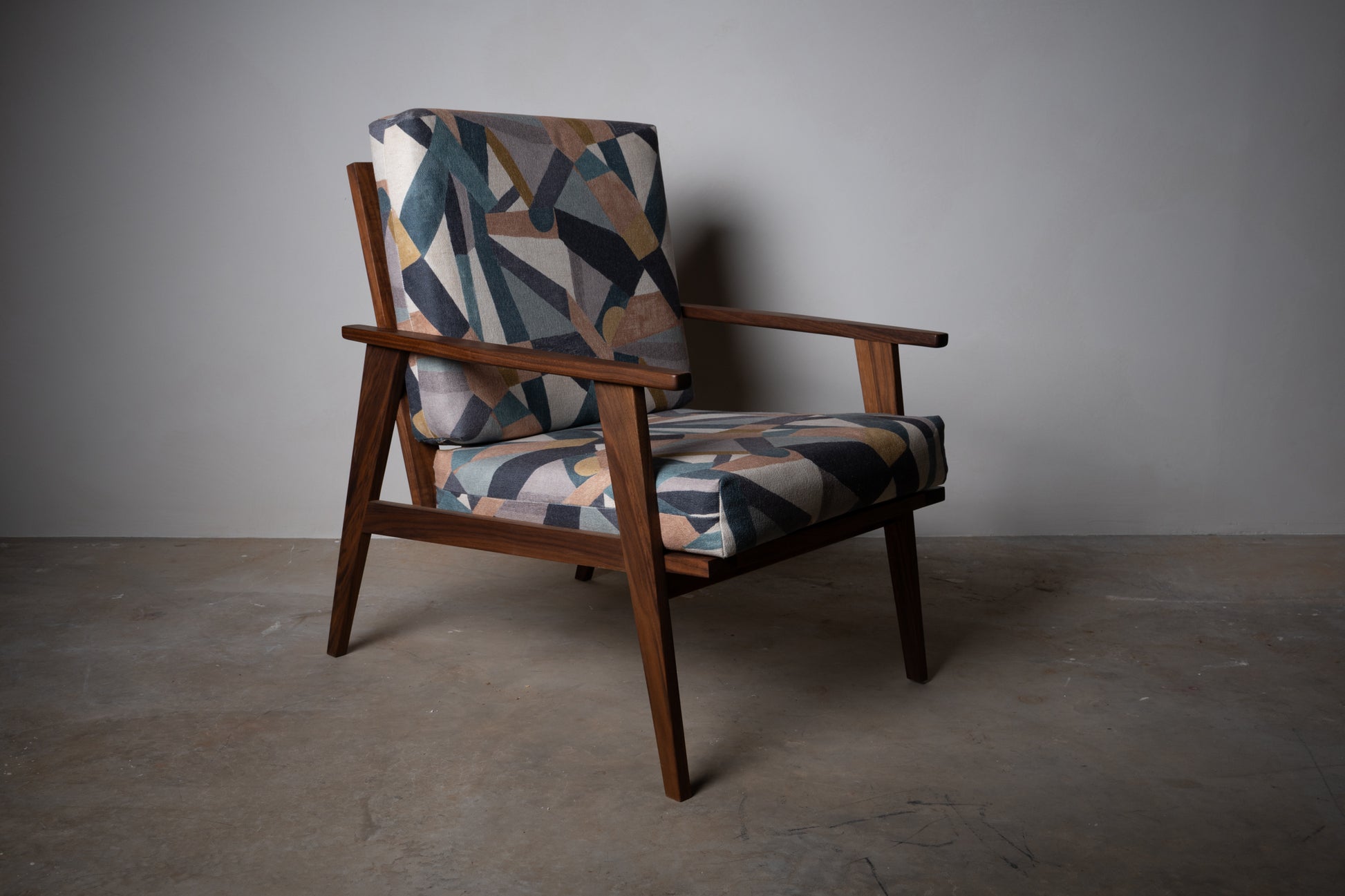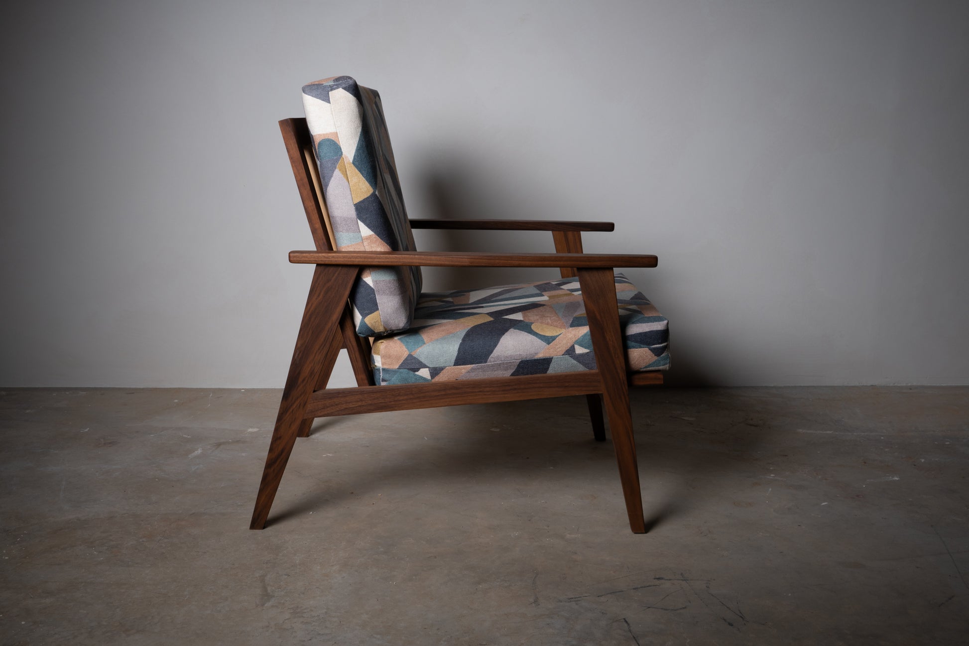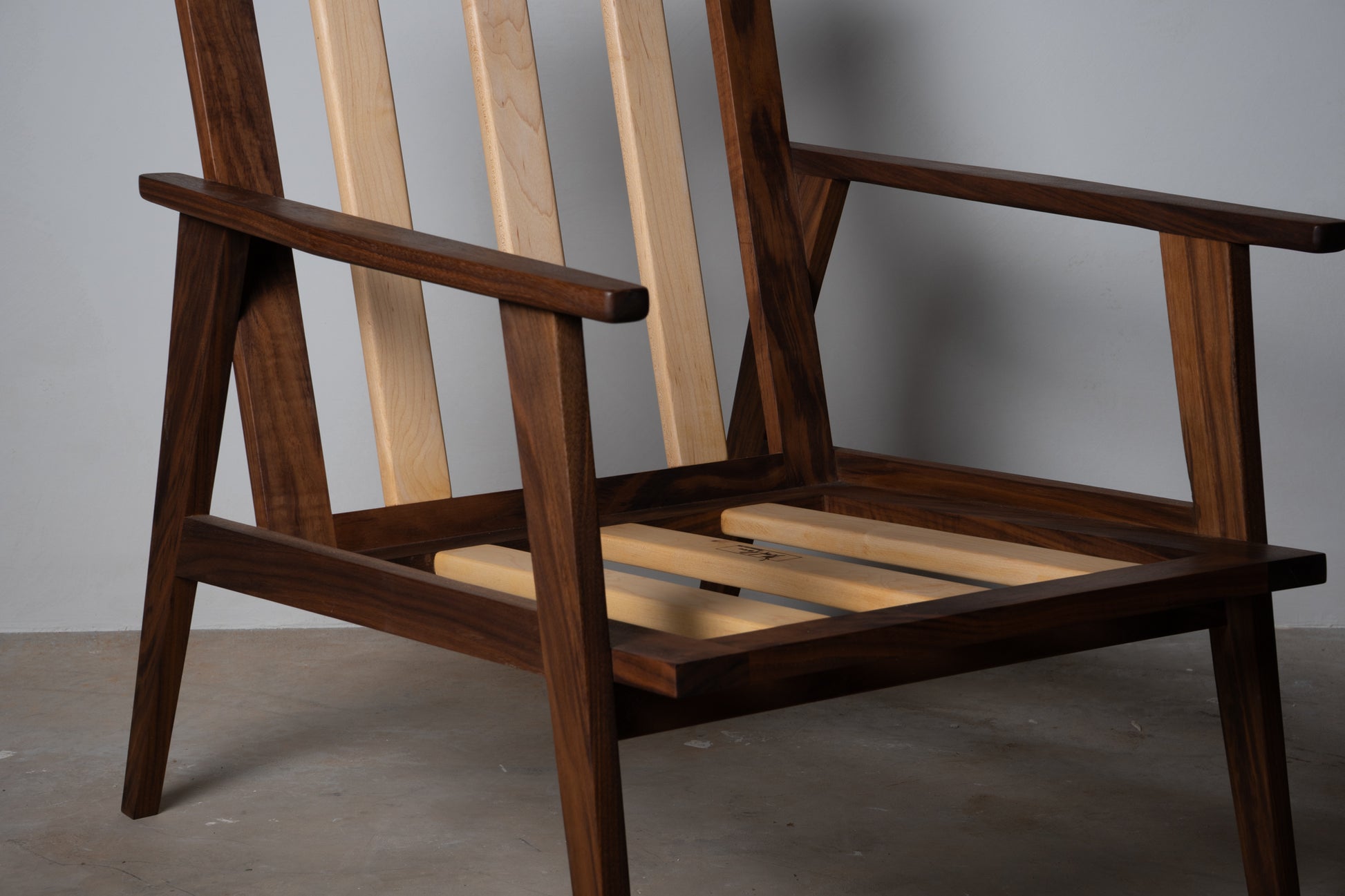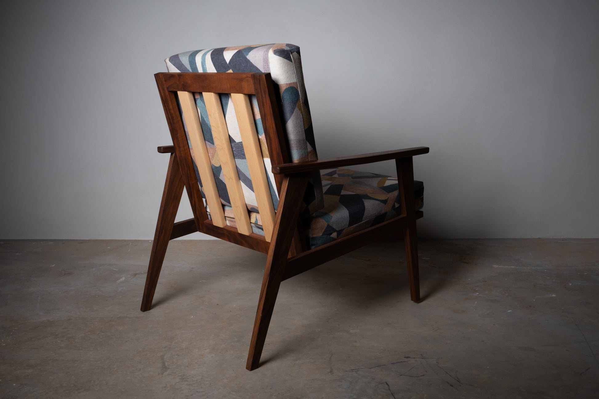 Walnut and Maple Accent Chair – Handmade Mid-Century Modern Upholstered Accent Chair
